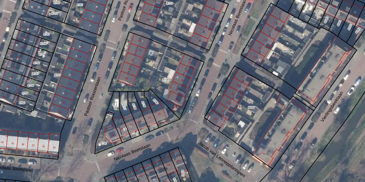 Nicolaas Beetslaan 17 is gelegen op kadastraal perceel ASV00O8734. Deze kadastrale aanduiding is uniek en wordt gebruikt door het Kadaster om eigendomsrechten en andere zakelijke rechten vast te leggen. Het perceel maakt onderdeel uit van de kadastrale gemeente Amstelveen.