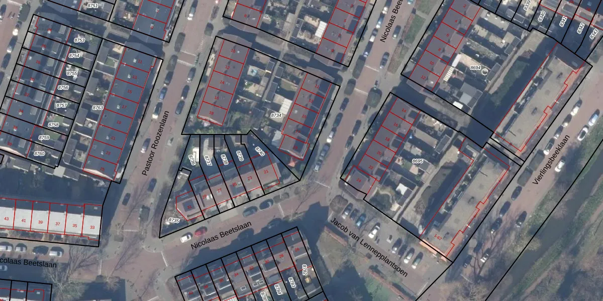 Nicolaas Beetslaan 19 is gelegen op kadastraal perceel ASV00O8734. Deze kadastrale aanduiding is uniek en wordt gebruikt door het Kadaster om eigendomsrechten en andere zakelijke rechten vast te leggen. Het perceel maakt onderdeel uit van de kadastrale gemeente Amstelveen.