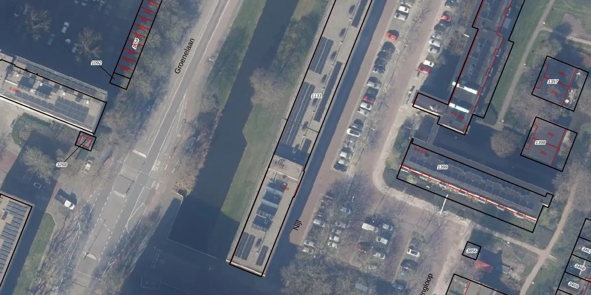 Het perceel waarop Nijl 13-B staat heeft een oppervlakte van 1938 m². Dit is een zeer groot perceel. De perceeloppervlakte wordt geregistreerd door het Kadaster. Gedetailleerde informatie over de maten van dit perceel kunt u vinden in het rapport Kadastrale kaart met maatvoering van Nijl 13-B.