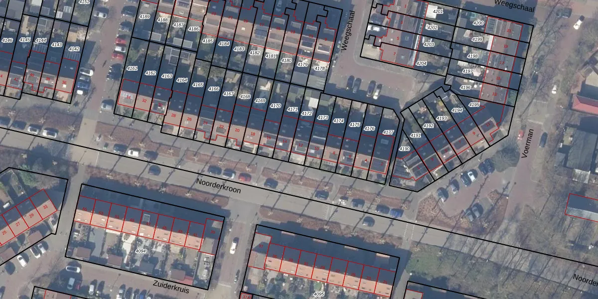 Het perceel waarop Noorderkroon 12 staat heeft een oppervlakte van 140 m². Dit is een middelgroot perceel. De perceeloppervlakte wordt geregistreerd door het Kadaster. Gedetailleerde informatie over de maten van dit perceel kunt u vinden in het rapport Kadastrale kaart met maatvoering van Noorderkroon 12.