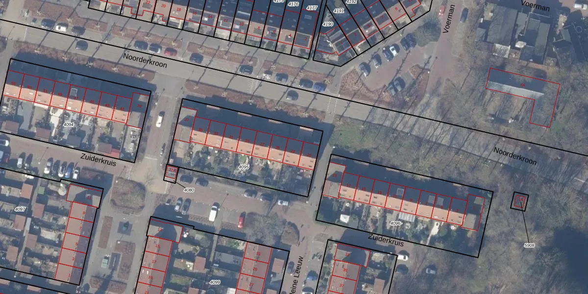 Noorderkroon 23 is gelegen op kadastraal perceel ASV00M4095. Deze kadastrale aanduiding is uniek en wordt gebruikt door het Kadaster om eigendomsrechten en andere zakelijke rechten vast te leggen. Het perceel maakt onderdeel uit van de kadastrale gemeente Amstelveen.