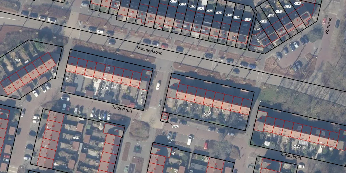 Noorderkroon 37 is gelegen op kadastraal perceel ASV00M4095. Deze kadastrale aanduiding is uniek en wordt gebruikt door het Kadaster om eigendomsrechten en andere zakelijke rechten vast te leggen. Het perceel maakt onderdeel uit van de kadastrale gemeente Amstelveen.