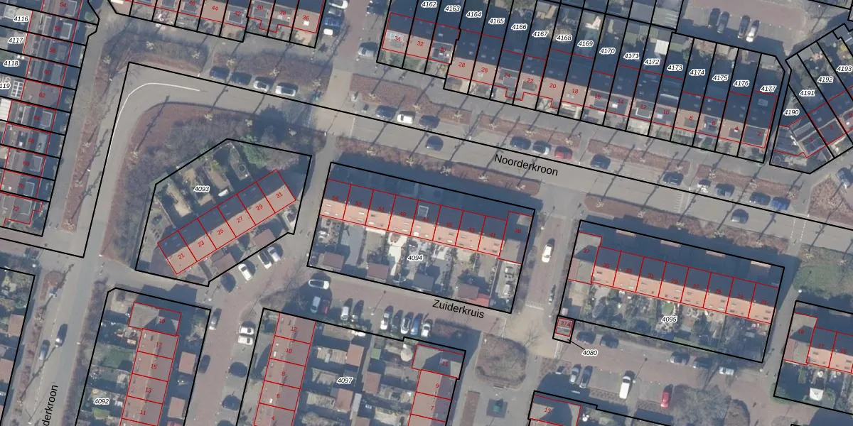 Noorderkroon 47 is gelegen op kadastraal perceel ASV00M4094. Deze kadastrale aanduiding is uniek en wordt gebruikt door het Kadaster om eigendomsrechten en andere zakelijke rechten vast te leggen. Het perceel maakt onderdeel uit van de kadastrale gemeente Amstelveen.