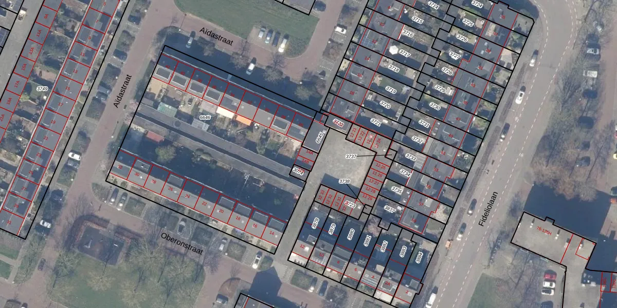Het perceel waarop Oberonstraat 14-A staat heeft een oppervlakte van 2768 m². Dit is een zeer groot perceel. De perceeloppervlakte wordt geregistreerd door het Kadaster. Gedetailleerde informatie over de maten van dit perceel kunt u vinden in het rapport Kadastrale kaart met maatvoering van Oberonstraat 14-A.