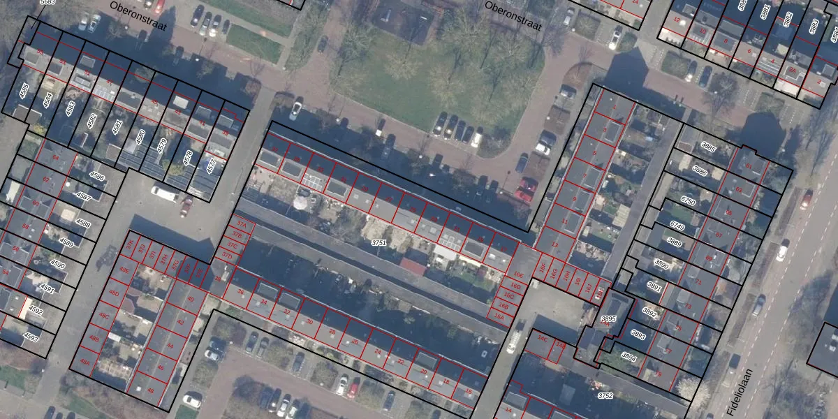 Het perceel waarop Oberonstraat 25 staat heeft een oppervlakte van 5333 m². Dit is een zeer groot perceel. De perceeloppervlakte wordt geregistreerd door het Kadaster. Gedetailleerde informatie over de maten van dit perceel kunt u vinden in het rapport Kadastrale kaart met maatvoering van Oberonstraat 25.