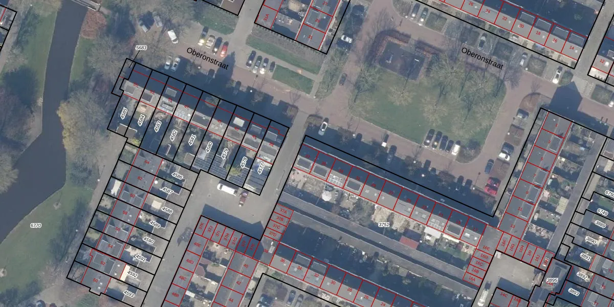 Het perceel waarop Oberonstraat 37 staat heeft een oppervlakte van 5333 m². Dit is een zeer groot perceel. De perceeloppervlakte wordt geregistreerd door het Kadaster. Gedetailleerde informatie over de maten van dit perceel kunt u vinden in het rapport Kadastrale kaart met maatvoering van Oberonstraat 37.
