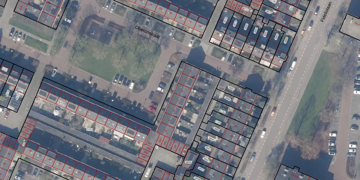 Het perceel waarop Oberonstraat 5 staat heeft een oppervlakte van 5333 m². Dit is een zeer groot perceel. De perceeloppervlakte wordt geregistreerd door het Kadaster. Gedetailleerde informatie over de maten van dit perceel kunt u vinden in het rapport Kadastrale kaart met maatvoering van Oberonstraat 5.