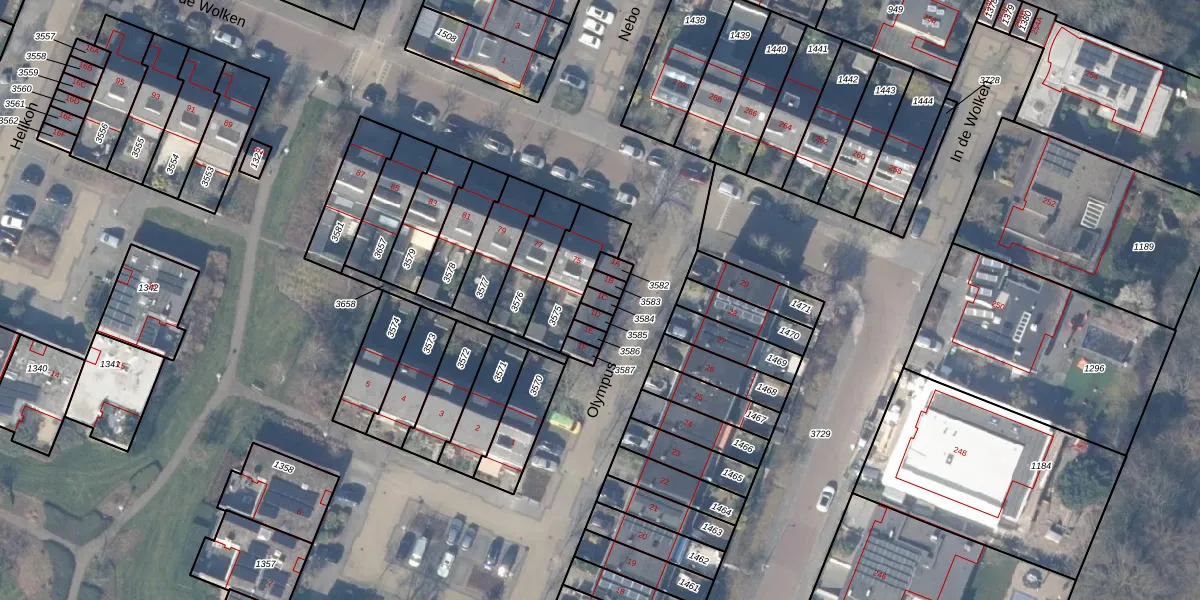 Gebruik de zoekbalk of klik op een perceel voor informatie over de adressen binnen dit perceel.