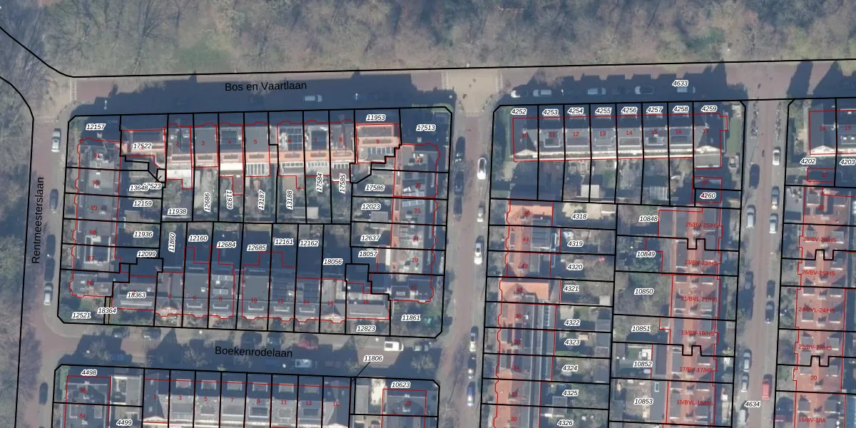 Gebruik de zoekbalk of klik op een perceel voor informatie over de adressen binnen dit perceel.