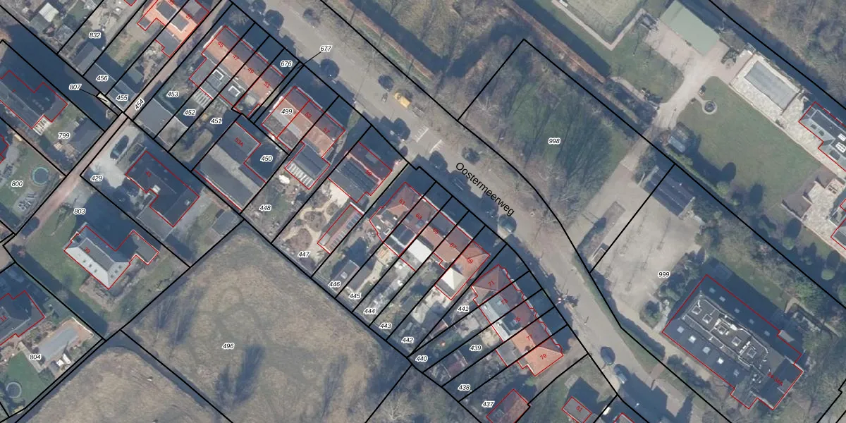 Oostermeerweg 63 is gelegen op kadastraal perceel ASV00W445. Deze kadastrale aanduiding is uniek en wordt gebruikt door het Kadaster om eigendomsrechten en andere zakelijke rechten vast te leggen. Het perceel maakt onderdeel uit van de kadastrale gemeente Amstelveen.