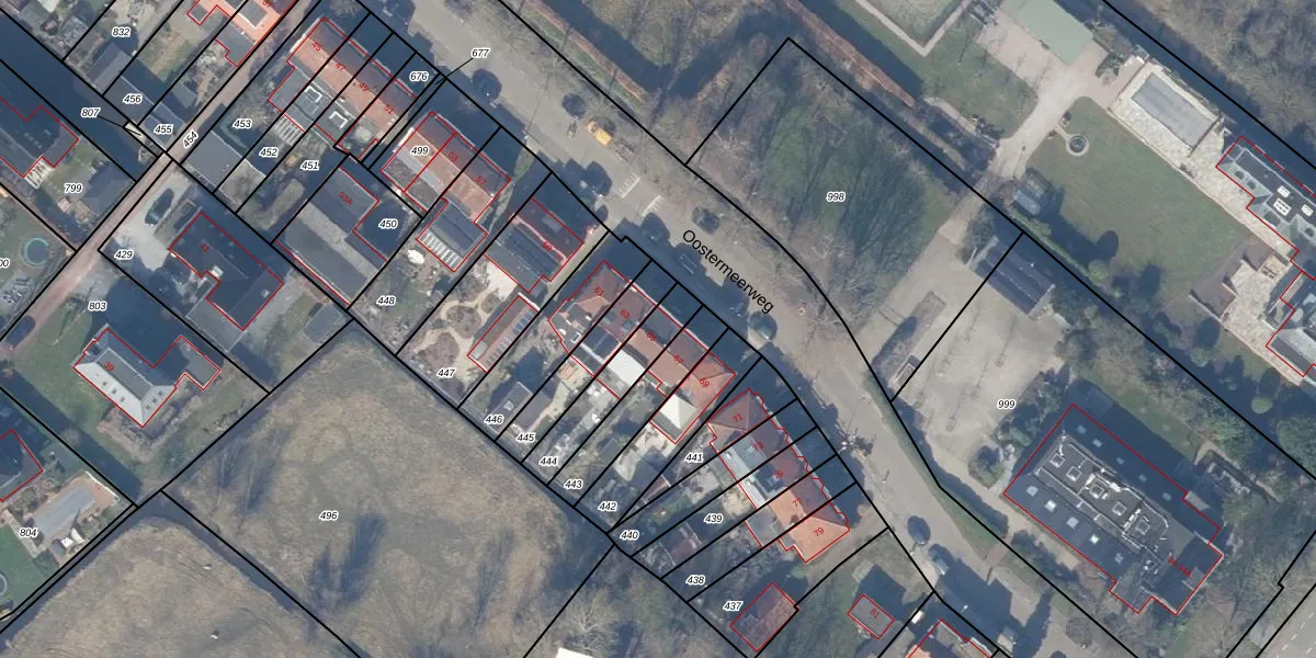 Oostermeerweg 65 is gelegen op kadastraal perceel ASV00W444. Deze kadastrale aanduiding is uniek en wordt gebruikt door het Kadaster om eigendomsrechten en andere zakelijke rechten vast te leggen. Het perceel maakt onderdeel uit van de kadastrale gemeente Amstelveen.