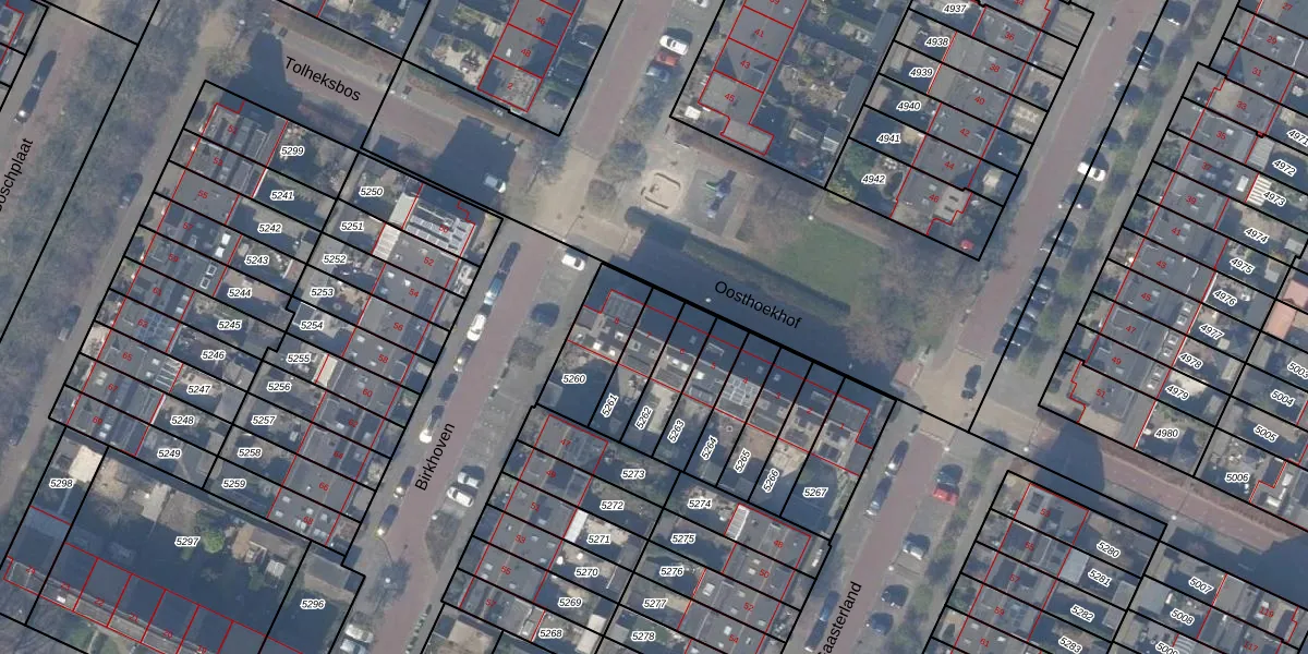 Oosthoekhof 7 is gelegen op kadastraal perceel ASV00O5261. Deze kadastrale aanduiding is uniek en wordt gebruikt door het Kadaster om eigendomsrechten en andere zakelijke rechten vast te leggen. Het perceel maakt onderdeel uit van de kadastrale gemeente Amstelveen.