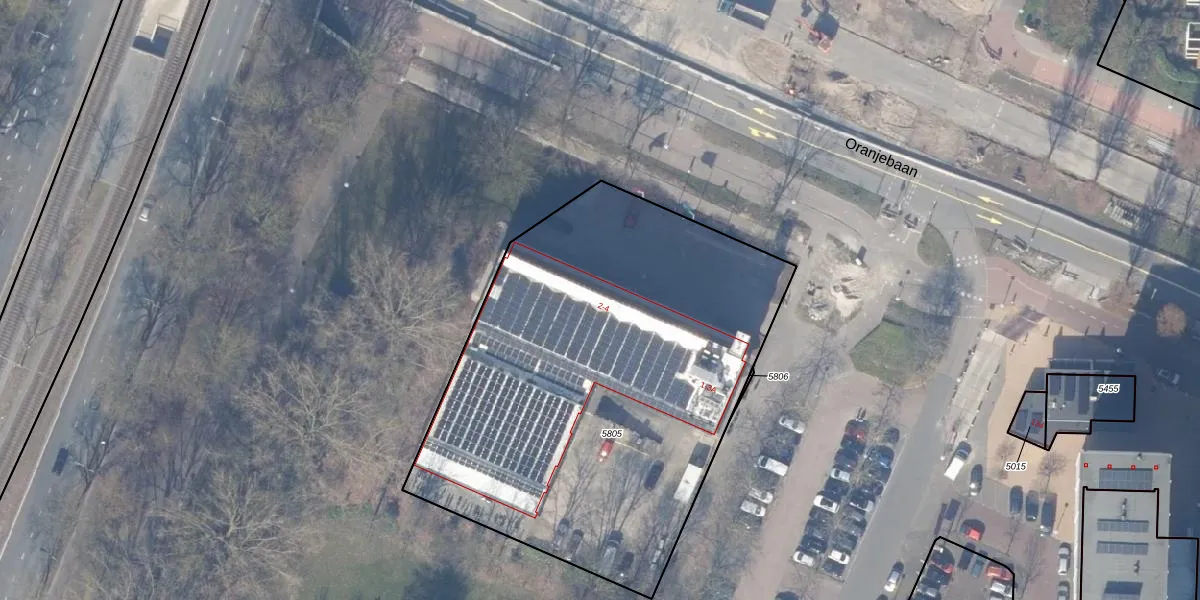 Oranjebaan 2 is gelegen op kadastraal perceel ASV00I5805. Deze kadastrale aanduiding is uniek en wordt gebruikt door het Kadaster om eigendomsrechten en andere zakelijke rechten vast te leggen. Het perceel maakt onderdeel uit van de kadastrale gemeente Amstelveen.