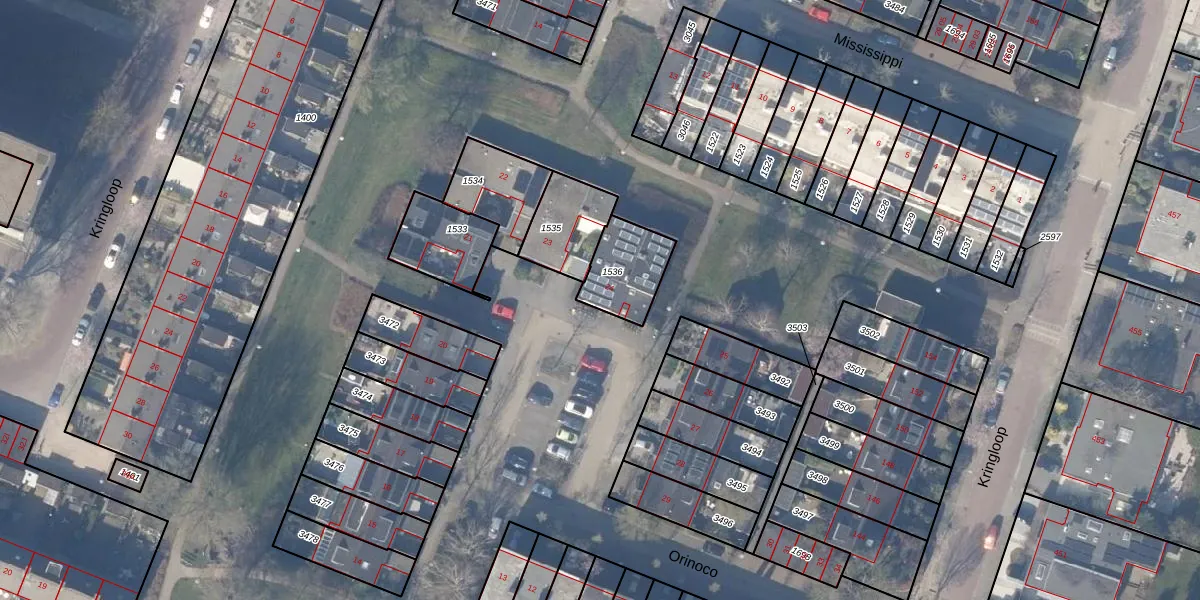 Gebruik de zoekbalk of klik op een perceel voor informatie over de adressen binnen dit perceel.