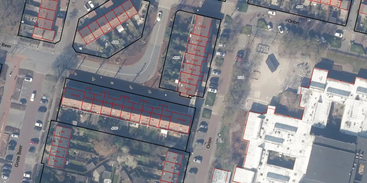 Orion 56 is gelegen op kadastraal perceel ASV00M4091. Deze kadastrale aanduiding is uniek en wordt gebruikt door het Kadaster om eigendomsrechten en andere zakelijke rechten vast te leggen. Het perceel maakt onderdeel uit van de kadastrale gemeente Amstelveen.