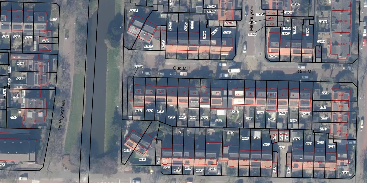 Het perceel waarop Oud Mijl 23 staat heeft een oppervlakte van 161 m². Dit is een middelgroot perceel. De perceeloppervlakte wordt geregistreerd door het Kadaster. Gedetailleerde informatie over de maten van dit perceel kunt u vinden in het rapport Kadastrale kaart met maatvoering van Oud Mijl 23.