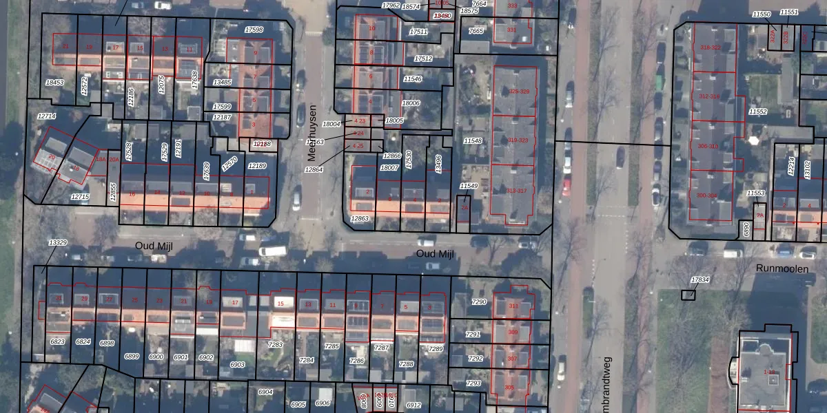 Gebruik de zoekbalk of klik op een perceel voor informatie over de adressen binnen dit perceel.