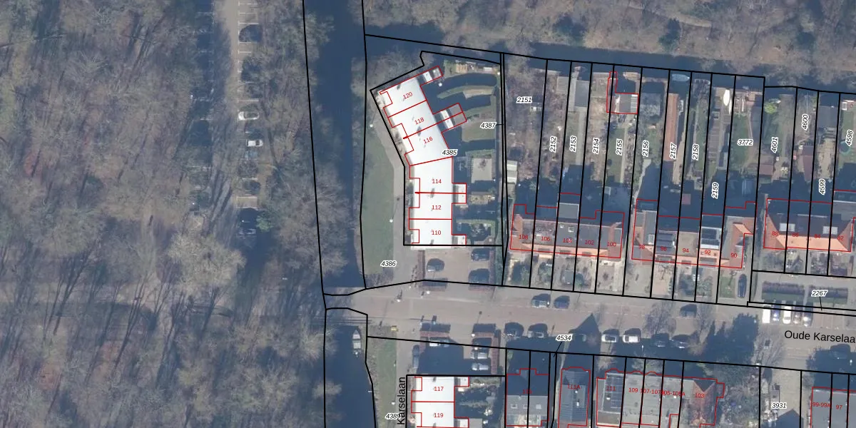 Oude Karselaan 112 is gelegen op kadastraal perceel ASV00G4385. Deze kadastrale aanduiding is uniek en wordt gebruikt door het Kadaster om eigendomsrechten en andere zakelijke rechten vast te leggen. Het perceel maakt onderdeel uit van de kadastrale gemeente Amstelveen.