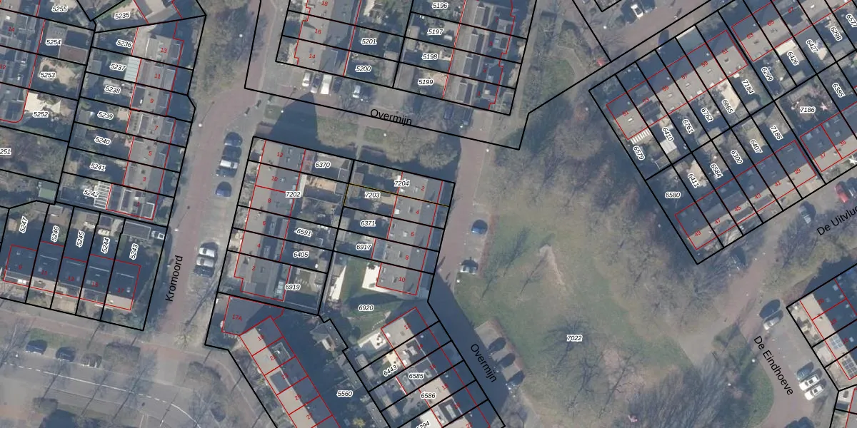 Overmijn 4 is gelegen op kadastraal perceel ASV00M7203. Deze kadastrale aanduiding is uniek en wordt gebruikt door het Kadaster om eigendomsrechten en andere zakelijke rechten vast te leggen. Het perceel maakt onderdeel uit van de kadastrale gemeente Amstelveen.