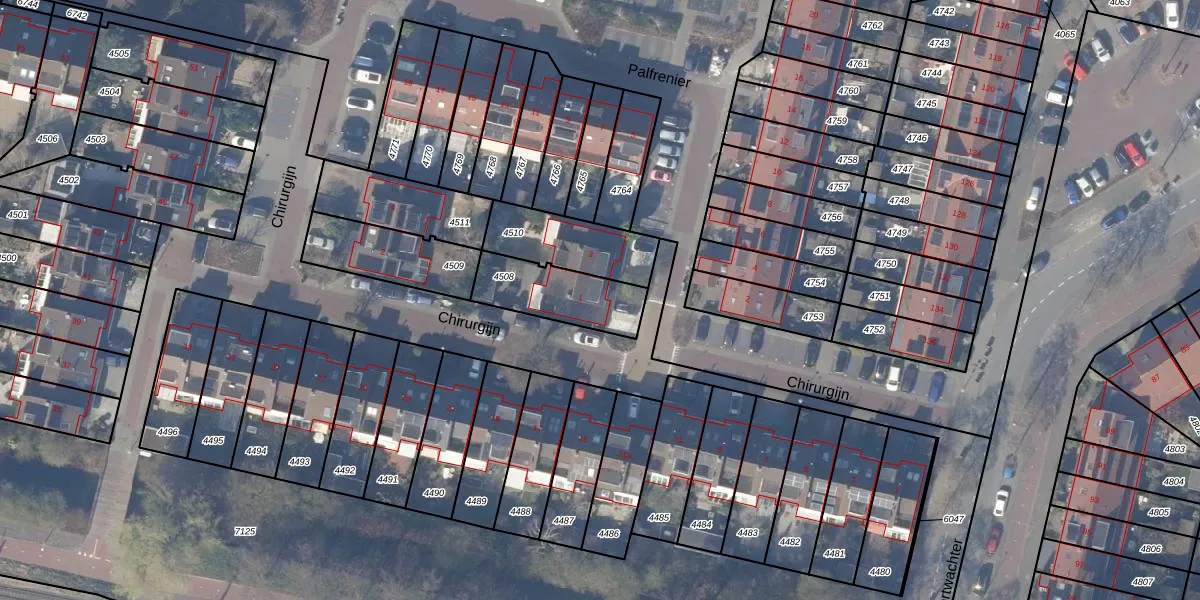 Het perceel waarop Palfrenier 1 staat heeft een oppervlakte van 246 m². Dit is een middelgroot perceel. De perceeloppervlakte wordt geregistreerd door het Kadaster. Gedetailleerde informatie over de maten van dit perceel kunt u vinden in het rapport Kadastrale kaart met maatvoering van Palfrenier 1.