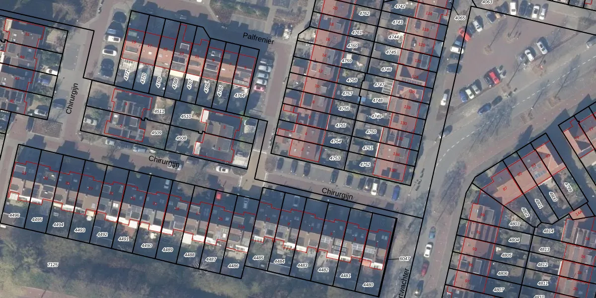 Gebruik de zoekbalk of klik op een perceel voor informatie over de adressen binnen dit perceel.