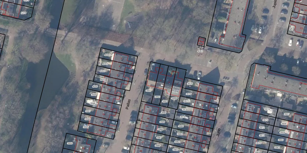 Het perceel waarop Pallas 7 staat heeft een oppervlakte van 176 m². Dit is een middelgroot perceel. De perceeloppervlakte wordt geregistreerd door het Kadaster. Gedetailleerde informatie over de maten van dit perceel kunt u vinden in het rapport Kadastrale kaart met maatvoering van Pallas 7.