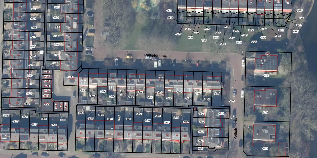 Het perceel waarop Pallieterstraat 21 staat heeft een oppervlakte van 136 m². Dit is een middelgroot perceel. De perceeloppervlakte wordt geregistreerd door het Kadaster. Gedetailleerde informatie over de maten van dit perceel kunt u vinden in het rapport Kadastrale kaart met maatvoering van Pallieterstraat 21.