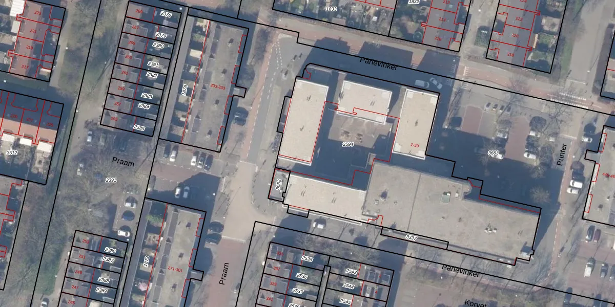 Parlevinker 41 is gelegen op kadastraal perceel ASV00L2594. Deze kadastrale aanduiding is uniek en wordt gebruikt door het Kadaster om eigendomsrechten en andere zakelijke rechten vast te leggen. Het perceel maakt onderdeel uit van de kadastrale gemeente Amstelveen.