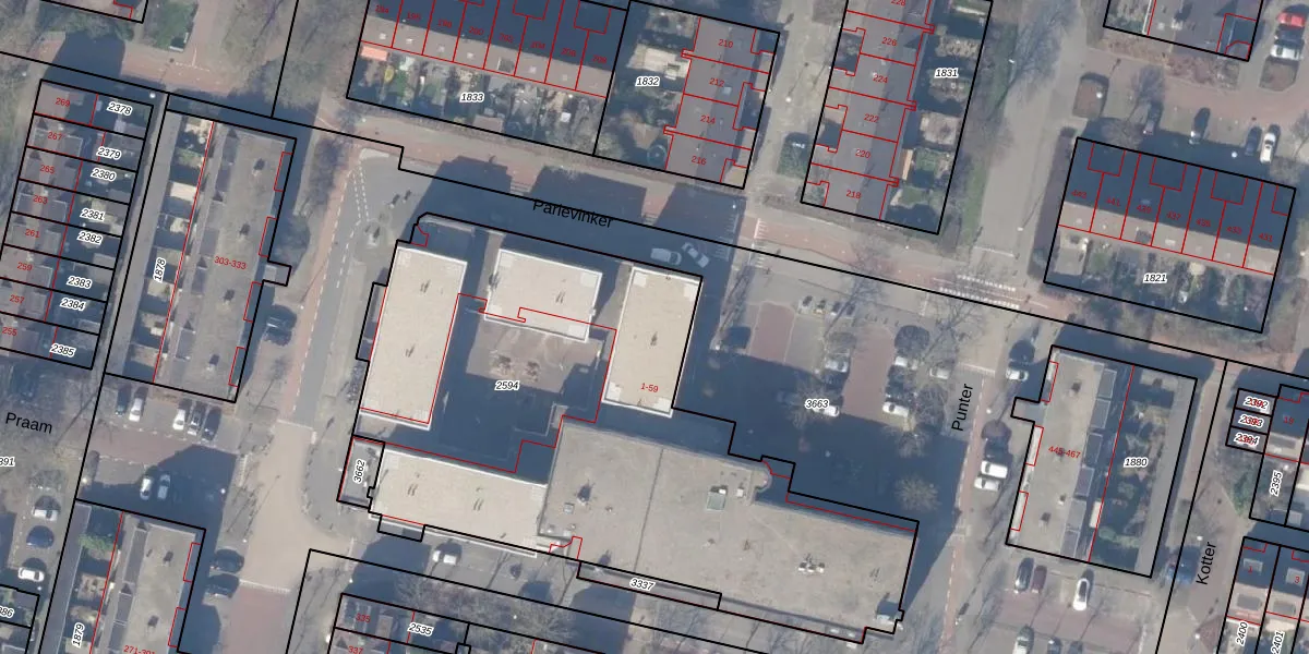 Parlevinker 59 is gelegen op kadastraal perceel ASV00L2594. Deze kadastrale aanduiding is uniek en wordt gebruikt door het Kadaster om eigendomsrechten en andere zakelijke rechten vast te leggen. Het perceel maakt onderdeel uit van de kadastrale gemeente Amstelveen.