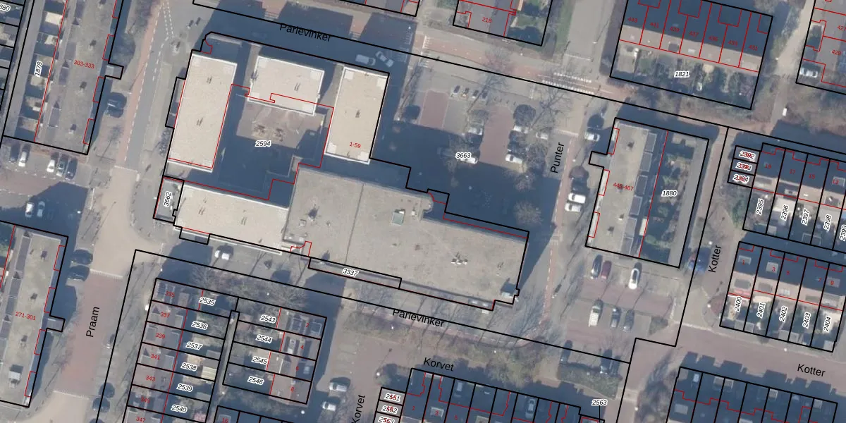Het perceel waarop Parlevinker 9 staat heeft een oppervlakte van 3058 m². Dit is een zeer groot perceel. De perceeloppervlakte wordt geregistreerd door het Kadaster. Gedetailleerde informatie over de maten van dit perceel kunt u vinden in het rapport Kadastrale kaart met maatvoering van Parlevinker 9.