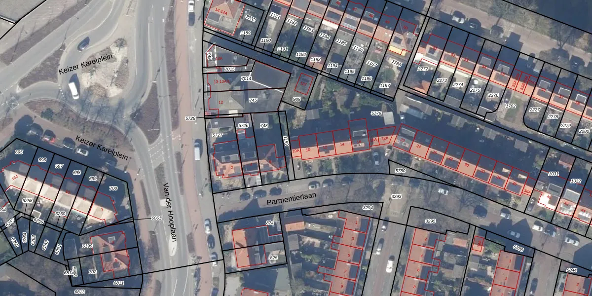 Parmentierlaan 10-A is gelegen op kadastraal perceel ASV00M5779. Deze kadastrale aanduiding is uniek en wordt gebruikt door het Kadaster om eigendomsrechten en andere zakelijke rechten vast te leggen. Het perceel maakt onderdeel uit van de kadastrale gemeente Amstelveen.