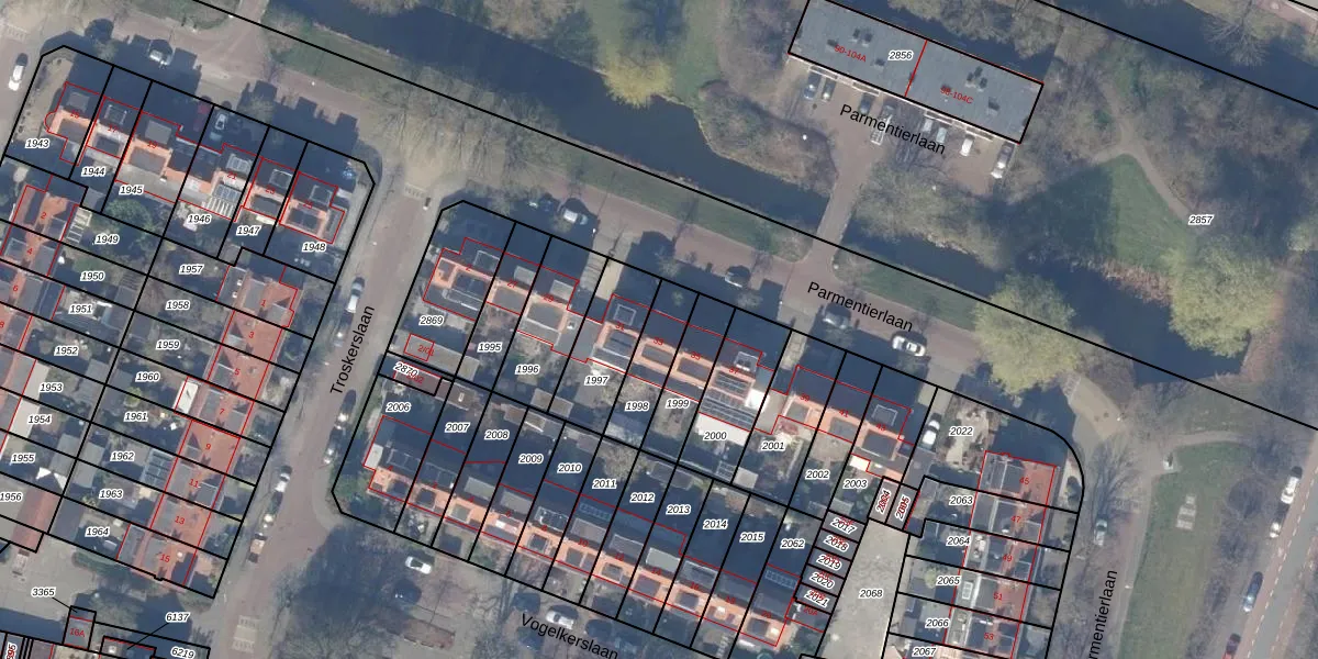 Gebruik de zoekbalk of klik op een perceel voor informatie over de adressen binnen dit perceel.