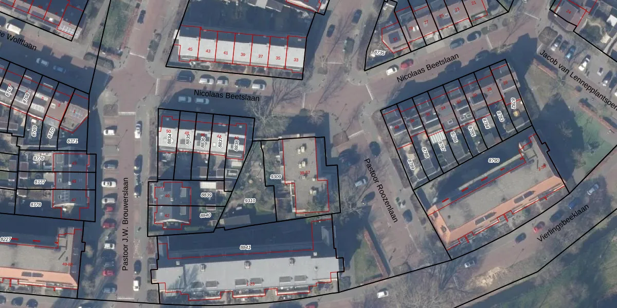 Het perceel waarop Pastoor Roozenlaan 39 staat heeft een oppervlakte van 550 m². Dit is een groot perceel. De perceeloppervlakte wordt geregistreerd door het Kadaster. Gedetailleerde informatie over de maten van dit perceel kunt u vinden in het rapport Kadastrale kaart met maatvoering van Pastoor Roozenlaan 39.