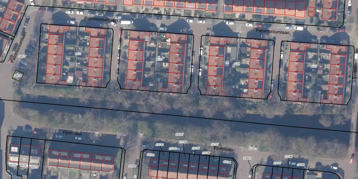 Het perceel waarop Patrimoniumlaan 47 staat heeft een oppervlakte van 1337 m². Dit is een zeer groot perceel. De perceeloppervlakte wordt geregistreerd door het Kadaster. Gedetailleerde informatie over de maten van dit perceel kunt u vinden in het rapport Kadastrale kaart met maatvoering van Patrimoniumlaan 47.