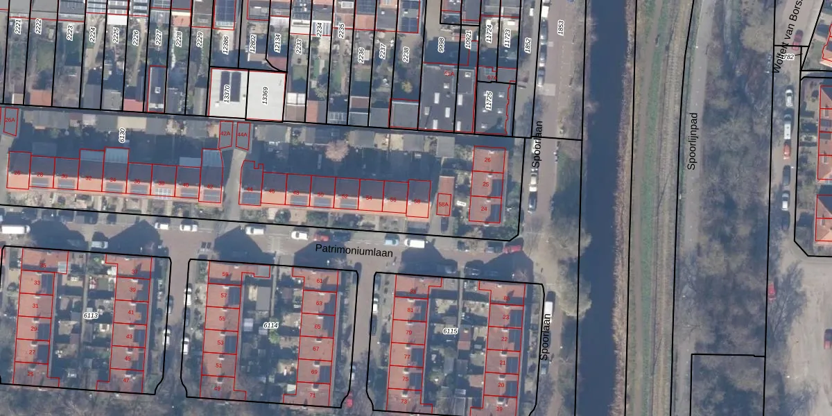 Het perceel waarop Patrimoniumlaan 58 staat heeft een oppervlakte van 5106 m². Dit is een zeer groot perceel. De perceeloppervlakte wordt geregistreerd door het Kadaster. Gedetailleerde informatie over de maten van dit perceel kunt u vinden in het rapport Kadastrale kaart met maatvoering van Patrimoniumlaan 58.