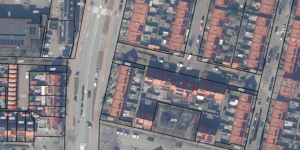 Het perceel waarop Pieronlaan 1 staat heeft een oppervlakte van 3252 m². Dit is een zeer groot perceel. De perceeloppervlakte wordt geregistreerd door het Kadaster. Gedetailleerde informatie over de maten van dit perceel kunt u vinden in het rapport Kadastrale kaart met maatvoering van Pieronlaan 1.