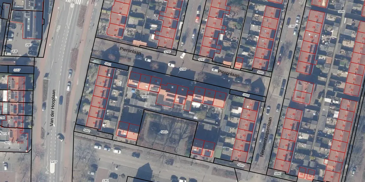 Pieronlaan 9 is gelegen op kadastraal perceel ASV00M5890. Deze kadastrale aanduiding is uniek en wordt gebruikt door het Kadaster om eigendomsrechten en andere zakelijke rechten vast te leggen. Het perceel maakt onderdeel uit van de kadastrale gemeente Amstelveen.