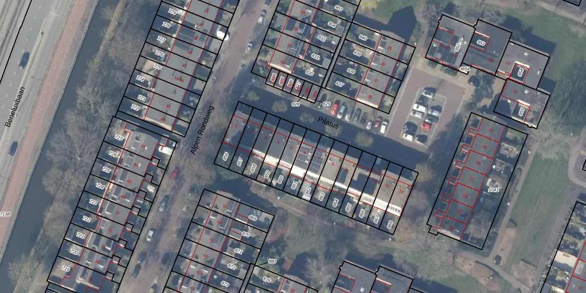 Het perceel waarop Pilatus 5 staat heeft een oppervlakte van 115 m². Dit is een middelgroot perceel. De perceeloppervlakte wordt geregistreerd door het Kadaster. Gedetailleerde informatie over de maten van dit perceel kunt u vinden in het rapport Kadastrale kaart met maatvoering van Pilatus 5.