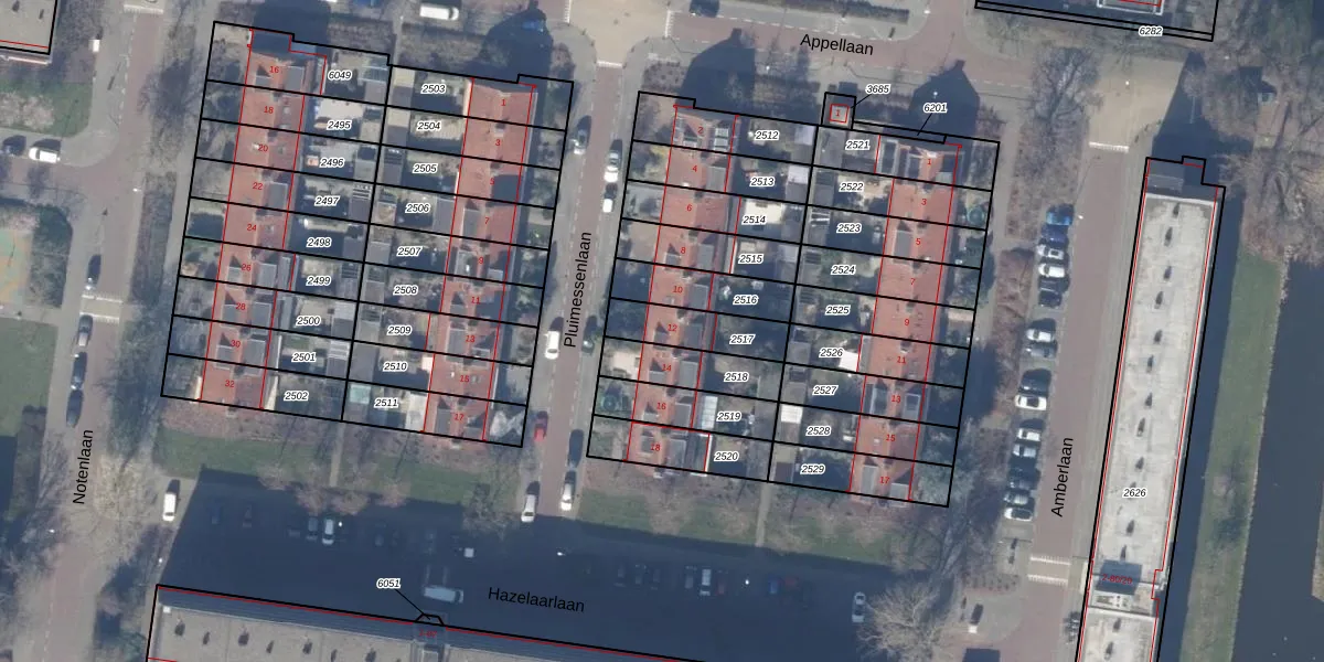 Gebruik de zoekbalk of klik op een perceel voor informatie over de adressen binnen dit perceel.