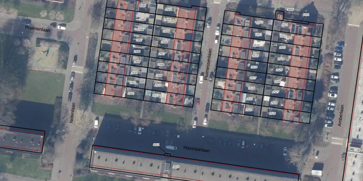 Het perceel waarop Pluimessenlaan 15 staat heeft een oppervlakte van 165 m². Dit is een middelgroot perceel. De perceeloppervlakte wordt geregistreerd door het Kadaster. Gedetailleerde informatie over de maten van dit perceel kunt u vinden in het rapport Kadastrale kaart met maatvoering van Pluimessenlaan 15.