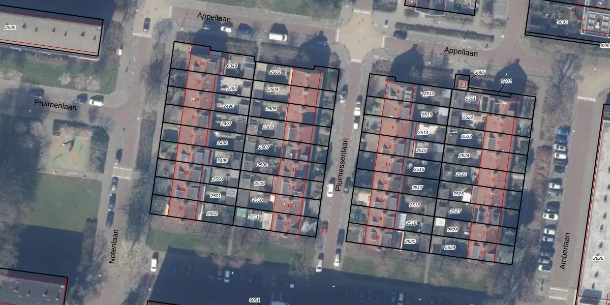 Gebruik de zoekbalk of klik op een perceel voor informatie over de adressen binnen dit perceel.
