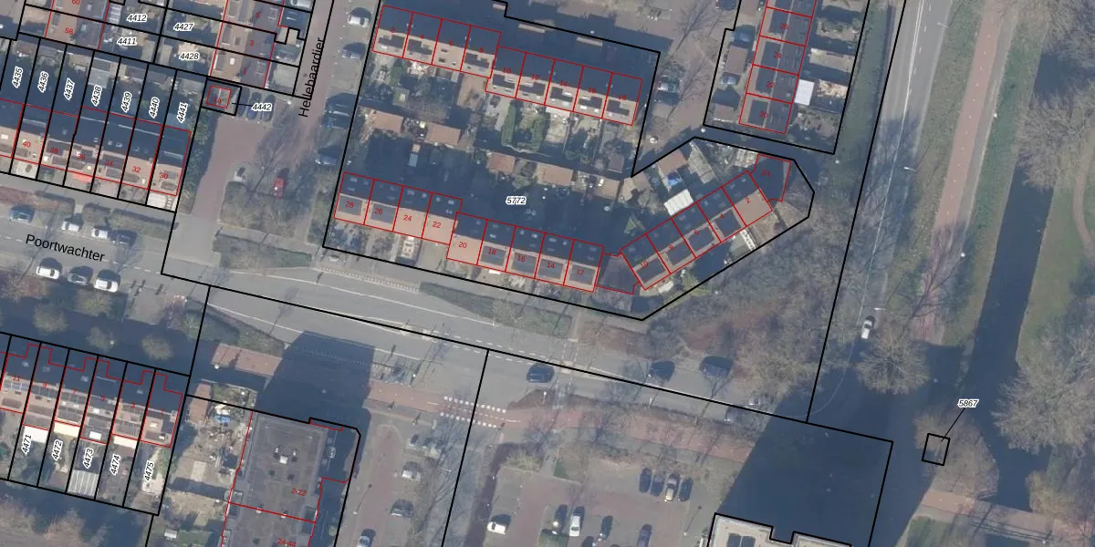 Het perceel waarop Poortwachter 14 staat heeft een oppervlakte van 3352 m². Dit is een zeer groot perceel. De perceeloppervlakte wordt geregistreerd door het Kadaster. Gedetailleerde informatie over de maten van dit perceel kunt u vinden in het rapport Kadastrale kaart met maatvoering van Poortwachter 14.
