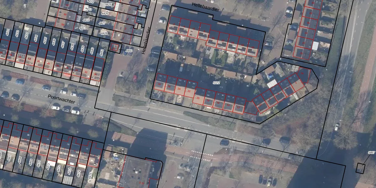 Het perceel waarop Poortwachter 22 staat heeft een oppervlakte van 3352 m². Dit is een zeer groot perceel. De perceeloppervlakte wordt geregistreerd door het Kadaster. Gedetailleerde informatie over de maten van dit perceel kunt u vinden in het rapport Kadastrale kaart met maatvoering van Poortwachter 22.