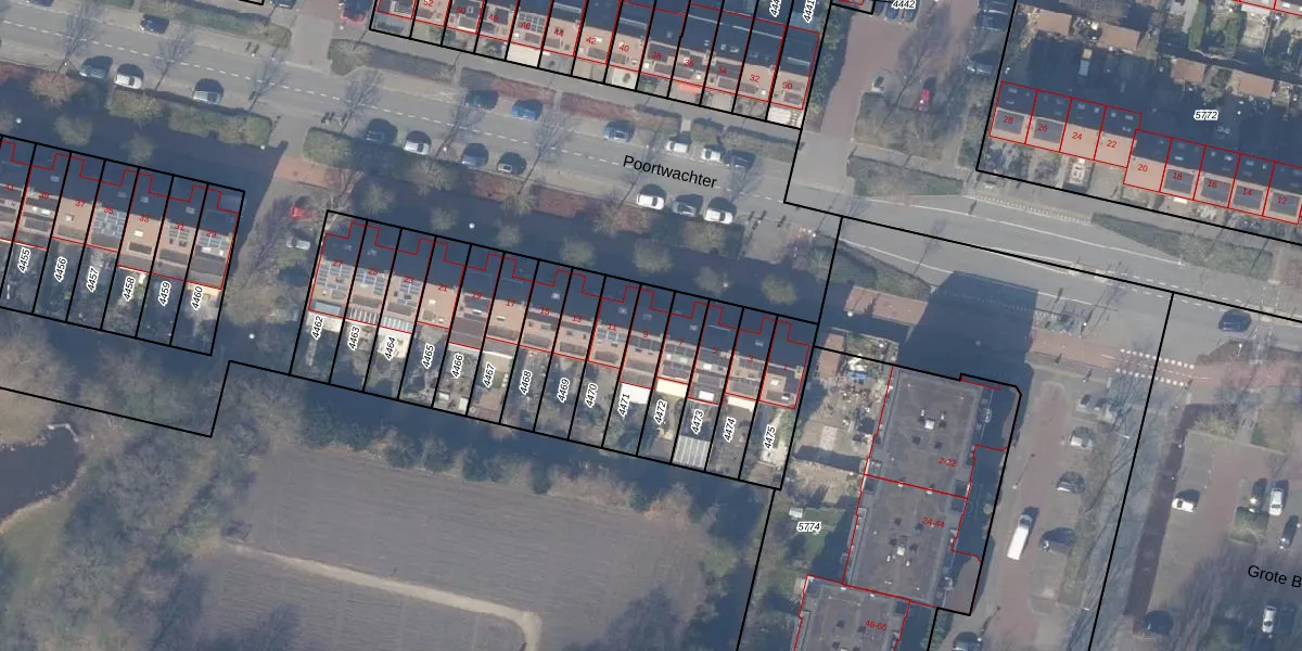 Gebruik de zoekbalk of klik op een perceel voor informatie over de adressen binnen dit perceel.