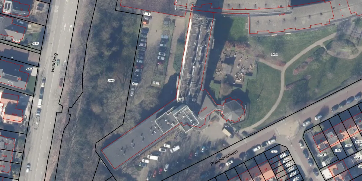 Het perceel waarop Populierenlaan 21-312 staat heeft een oppervlakte van 1,5 ha. Dit is een zeer groot perceel. De perceeloppervlakte wordt geregistreerd door het Kadaster. Gedetailleerde informatie over de maten van dit perceel kunt u vinden in het rapport Kadastrale kaart met maatvoering van Populierenlaan 21-312.