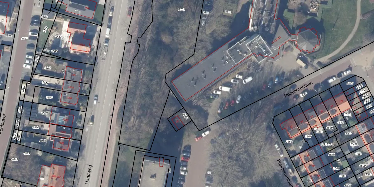 Het perceel waarop Populierenlaan 21-319 staat heeft een oppervlakte van 1,5 ha. Dit is een zeer groot perceel. De perceeloppervlakte wordt geregistreerd door het Kadaster. Gedetailleerde informatie over de maten van dit perceel kunt u vinden in het rapport Kadastrale kaart met maatvoering van Populierenlaan 21-319.
