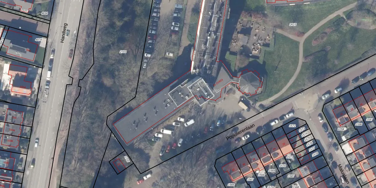 Populierenlaan 21-1013 is gelegen op kadastraal perceel ASV00M2615. Deze kadastrale aanduiding is uniek en wordt gebruikt door het Kadaster om eigendomsrechten en andere zakelijke rechten vast te leggen. Het perceel maakt onderdeel uit van de kadastrale gemeente Amstelveen.