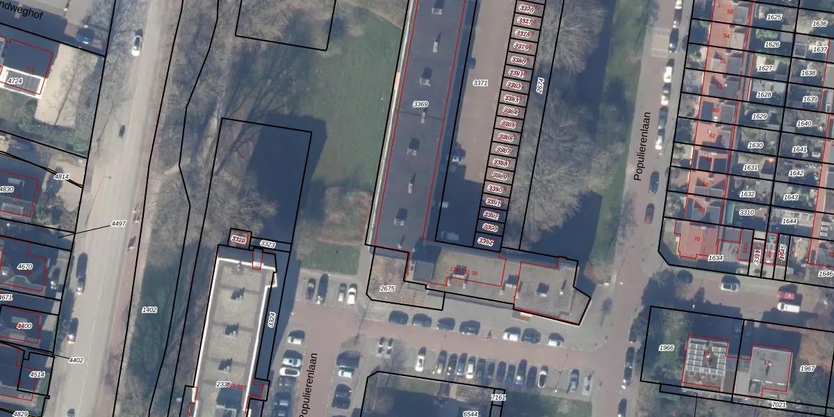 Populierenlaan 231-25 is gelegen op kadastraal perceel ASV00M3369. Deze kadastrale aanduiding is uniek en wordt gebruikt door het Kadaster om eigendomsrechten en andere zakelijke rechten vast te leggen. Het perceel maakt onderdeel uit van de kadastrale gemeente Amstelveen.