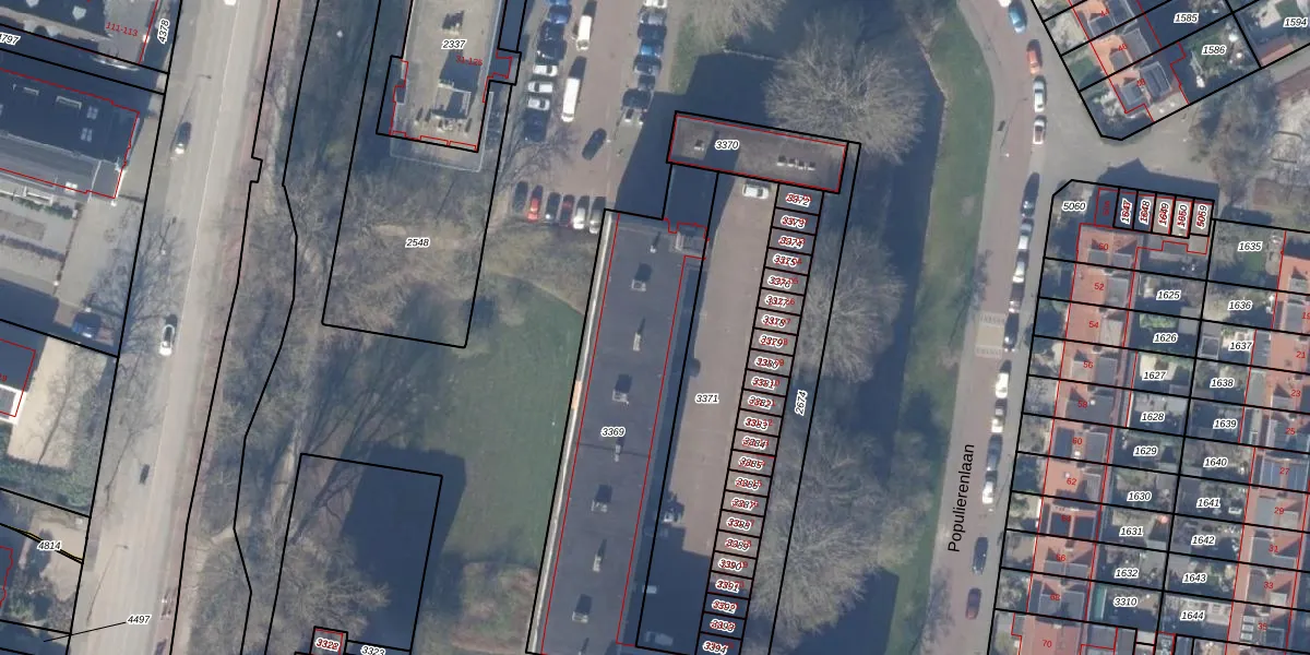 Het perceel waarop Populierenlaan 231-34 staat heeft een oppervlakte van 1701 m². Dit is een zeer groot perceel. De perceeloppervlakte wordt geregistreerd door het Kadaster. Gedetailleerde informatie over de maten van dit perceel kunt u vinden in het rapport Kadastrale kaart met maatvoering van Populierenlaan 231-34.
