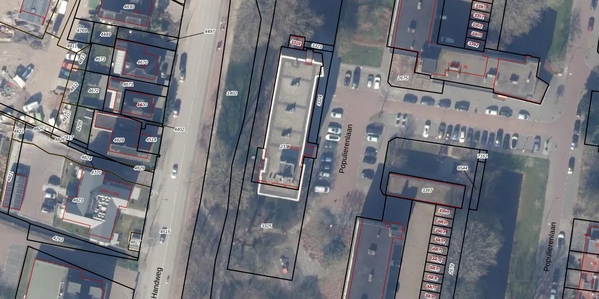 Populierenlaan 313 is gelegen op kadastraal perceel ASV00M2336. Deze kadastrale aanduiding is uniek en wordt gebruikt door het Kadaster om eigendomsrechten en andere zakelijke rechten vast te leggen. Het perceel maakt onderdeel uit van de kadastrale gemeente Amstelveen.